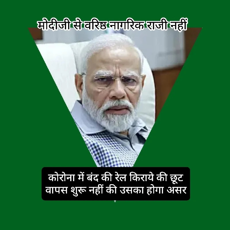 👌 कोरोना काल में रेलों के संचालन के लिए किराये में छूट खत्म की गई और साधारण रेलों को एक्सप्रेस नाम देकर अधिक किराये में यात्रा के लिए हर नागरिक को मजबूर किया गया। अब कोरोना खत्म हो जाने के बाद भी छूट शुरू नहीं करना लूट है। अभी भी अनेक रेलें एक्सप्रेस रूप में ही चलाई जा रही है उनको साधारण घोषित नहीं किया गया।